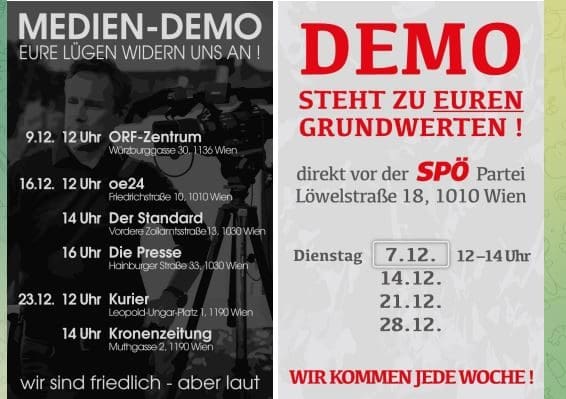 Widerstand wird immer größer: künftig auch Demos vor SPÖ-Zentrale und Redaktionsstuben