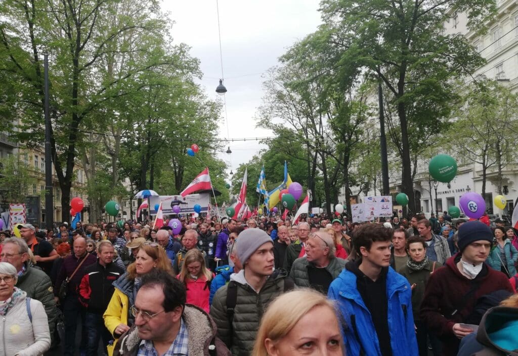 Auch heute, am 1. Mai am Nachmittag, fand eine dieser Demonstrationen statt. Denn immer noch ist die Corona-Impfpflicht Gesetz in Österreich und greift in die persönlichsten Belange der Menschen ein, nämlich in ihren Körper. Die Impfpflicht ist nur ausgesetzt, aber nicht aufgehoben. Und immer noch gibt es Masken- und Testpflichten.