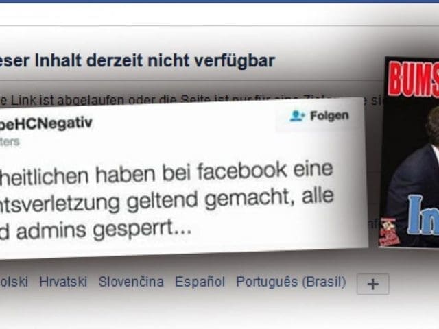 Facebook hat die Fanseite "Blutgruppe HC Negativ" gesperrt. Das linke Projekt, das unter dem Deckmatel der Satire seit Jahren Hetze gegen die FPÖ, ihre Politiker und Änhänger betreibt, hat konkret eine Urheberrechtsverletzung begangen.