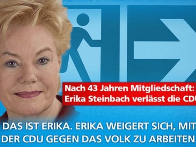 Am 14. Jänner kündigte die CDU-Bundestagsabgeordnete Erika Steinbach an, sowohl aus der Unionsfraktion CDU/CSU als auch aus ihrer Partei, für die sie seit nahezu 27 Jahren im Bundestag sitzt, auszutreten. Grund für diesen Schritt ist für sie die völlig fehlgeleitete Flüchtlingspolitik der deutschen Bundesregierung.