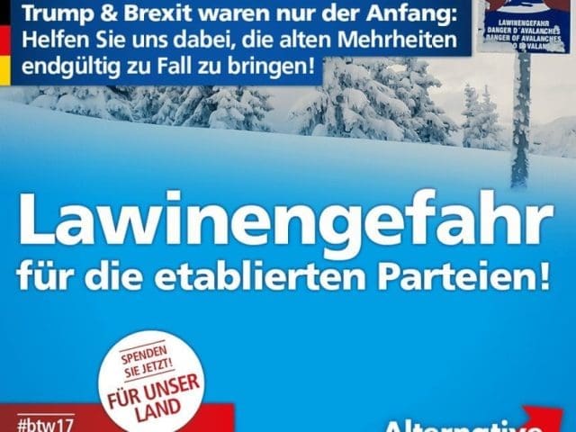 Daher tut man jetzt bereits mehr als besorgt, weil Umfragen zeigen, dass die AfD eine durchaus mitbestimmende Kraft in Deutschland werden wird. Eine Insa-Umfrage etwa stellte fest, dass die AfD seit der Vorwoche 2,5 Prozentpunkte zulegte und nun bei 15,5% steht, während die CDU/CSU unter Merkel 1,5% verlor und nach heutigem Stand 31,5% der Stimmen erreichen würde. Ebenfalls im Abwärtstrend befindet sich die SPD 20,5% (minus 1%). Alle anderen Parteien (Linke, Grüne, FDP) verlieren leicht oder bleiben auf gleich tiefem Niveau.