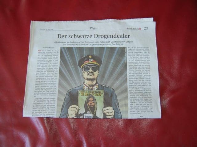 Ein Musterbeispiel ist der in der Dienstag-Ausgabe bereits auf der Titelseite unter „Schwarzmalerei“ groß angekündigte Bericht auf Seite 23. Unter dem Titel „Der schwarze Drogendealer“ versucht Autorin Solmaz Khorsand hier ideologisch verkrampft und völlig ohne Sach- und Fachkenntnis, die dominante Rolle afrikanischer Drogenhändler (nicht nur) in Österreich kleinzureden. Alleine die öffentliche Nennung der Täter als Afrikaner sei laut Wiener Zeitung ja schon verwerflich, weil "diskriminierend".