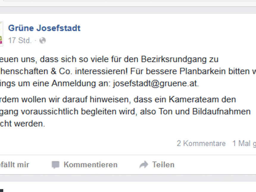 Josefstädter Grüne rufen zu Hetzveranstaltung auf
