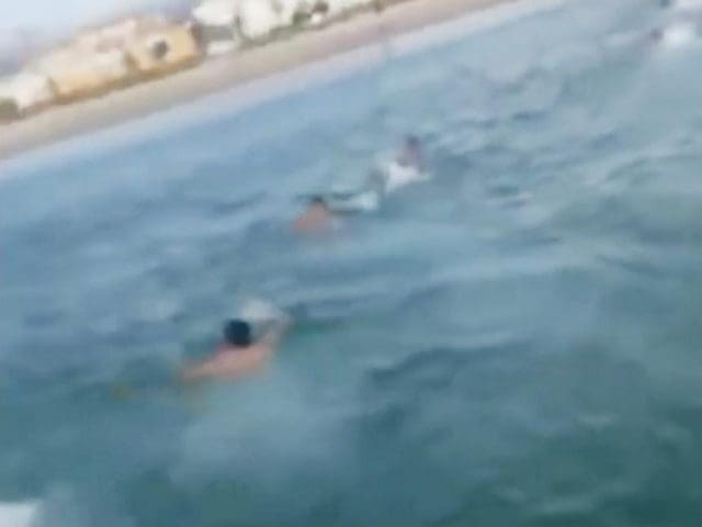 The immigrants, reportedly all from North Africa, are asked to look at the camera before swimming for shore in the footage that was taken just of the Playa de los Lances beach in Cadiz province, in southern Spain.